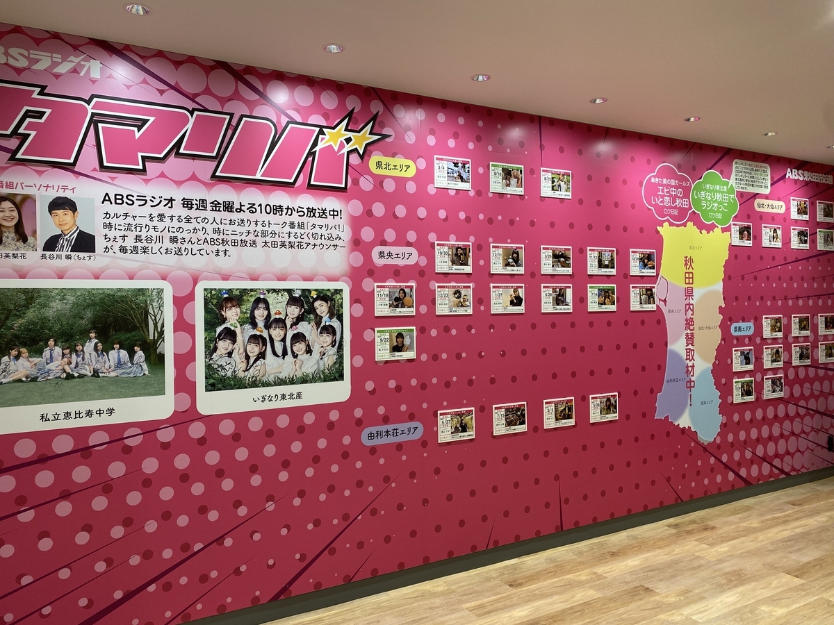 ABSのラジオ『タマリバ!』でエビ中といぎなり東北産がロケに行った秋田のスポットが掲示されていたり……。